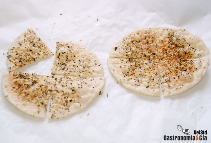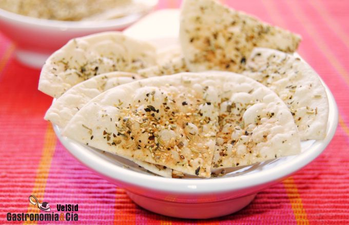 Esto son unos nachos improvisados, unos chips mediterráneos crujientes y con un sabor conocido, aromático y elegante. Son estupendos para salseas (o dipear), es decir, para servirlos acompañados de una salsa para mojar, desde un guacamole hasta un dip de feta y limón, de queso y cerveza Guinness, de cebolla…