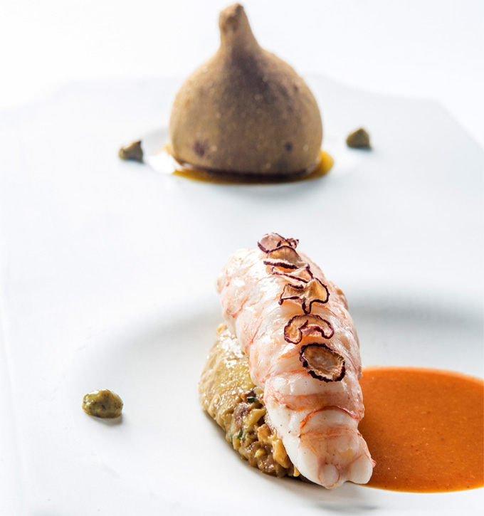 Hoy entramos un poquito en la cocina del restaurante mallorquín a través de uno de sus platos, la Cigala al higo con foie de Andreu Genestra. El territorio en el que se encuentra, en el que creció el cocinero (pero su carrera profesional se ha forjado en Barcelona, Guipuzcoa, Girona, Londres, Estocolmo, Brasil, Moscú, París…), nos muestra a los peninsulares muchas novedades que, evidentemente, también son fruto de la creatividad, e inevitablemente despierta el interés de conocer más a fondo esta cocina.
