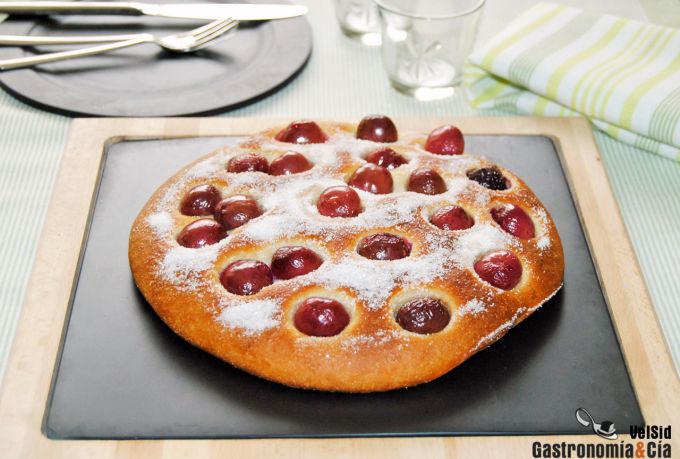 Ya estamos en temporada de cerezas, así que la inauguramos en nuestra cocina con una receta dulce, una Coca de cerezas de la que disfrutamos año tras año, sobre todo desde que nos trasladamos a una zona en la que es muy tradicional esta coca catalana. Es típica de Reus (Tarragona) y de Salzadella (Castellón), donde precisamente este fin de semana se celebrará la feria de la cereza.