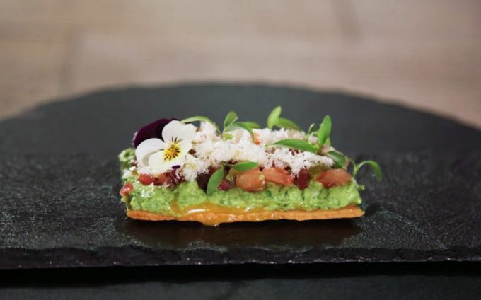 Hoy os vamos a proponer una tapa creativa y muy apetitosa a sabiendas de que también os gusta tapear en casa y sorprender a vuestra familia y también cuando tenéis invitados, para ello elegimos una creación de una gran cocinera, Begoña Rodrigo del Restaurante La Salita de Valencia. En la foto podéis ver su Coca de pesto de berenjena ahumada, encurtidos y salazones, posiblemente conozcáis esta tapa si no os habéis perdido ni un capítulo del programa de Canal Cocina ‘El Rey del Pincho‘.