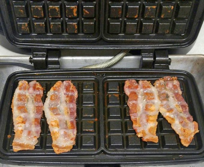Cocinar bacon en una gofrera para que tenga menos grasa