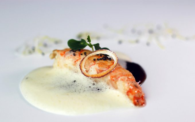 Una buena cigala no necesita mucho más que un buen punto de cocción para ser una verdadera delicia, así que hay que manipularla poco, darle un cocinado apropiado y crear un acompañamiento que sorprenda, que le acompañe sin esconder sus sabor. Una buena propuesta es la que podéis ver en la foto que ilustra estas líneas, es la Cola de cigala asada sobre jugo de cebolla y emulsión de patata y arbequina de José Miguel Olazabalaga, chef del Restaurante Aizian de Bilbao.