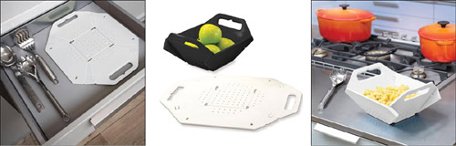Siempre nos estamos quejando de la falta de espacio en la cocina, por eso los diseñadores no dejan de buscar satisfacer nuestras necesidades, a veces con utensilios más útiles y otras veces menos, lo mejor es cuando encima tiene varias utilidades como es el caso del colador plegable.