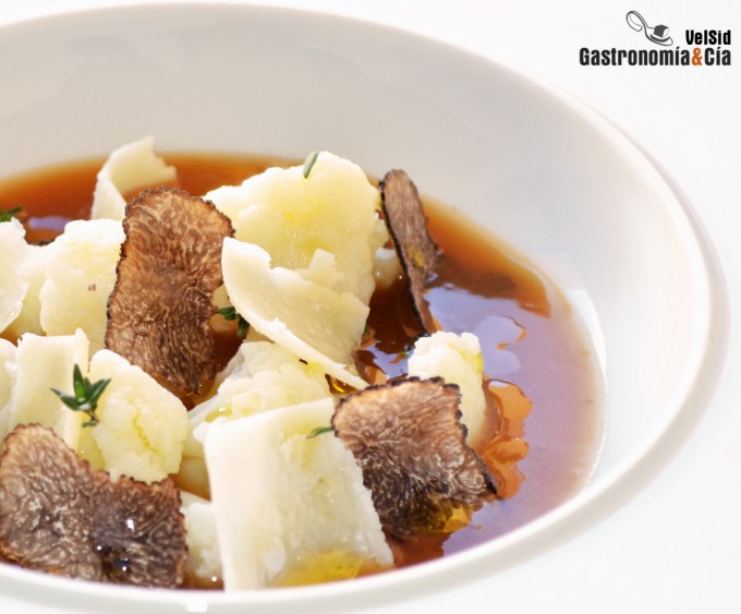 Como comentábamos, es muy fácil de hacer, pero es muy importante partir de un buen caldo casero de jamón, ya sabéis que a nosotros nos gusta hacerlo sin otros ingredientes añadidos que resten protagonismo a su sabor, podéis ver aquí nuestra receta de caldo de jamón. Con él podréis hacer muchos platos ricos, como esta Coliflor con trufa negra y parmesano, esperamos que lo podáis probar y lo disfrutéis.