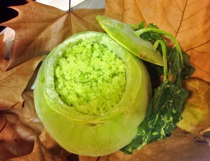 Vaciamos la bola del colinabo haciendo un cuenco que introduciremos en el congelador.
