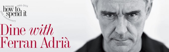 Se celebra el 20 aniversario de How to spend it (Cómo gastarlo), para celebrarlo, y con la finalidad de proporcionar una experiencia muy especial a sus lectores, han llegado a un acuerdo con el chef de elBulli para organizar cuatro cenas íntimas y exclusivas, es la acción denominada ‘Come con Ferrán Adrià’ y se podrá disfrutar por un precio de 525 euros.