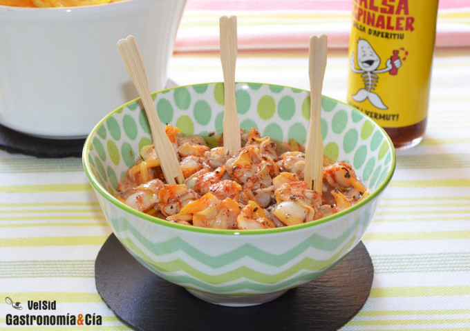 En esta receta para aliñar los berberechos hemos utilizado la salsa Espinaler, es una salsa de aperitivo muy popular que se produce desde hace más de 50 años, aunque quizá no se distribuye en toda España (se hace en Cataluña). Pero desde hace unos años le han salido imitadores, así que podéis elegir otra marca de salsa a base de vinagre, pimentón y especias que encontréis en vuestros comercios, debe ser similar. Y si encontráis esta salsa romesco, también es ideal para esta preparación de berberechos.