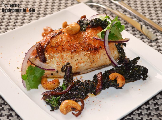 Cazuela de pollo con kale y pimientos