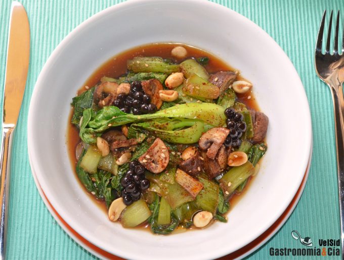 Gracias a que las hojas de este cogollo tienen un tronco grueso y crujiente, aporta a los guisos una textura extra que se agradece en la degustación, puesto que, sea cuál sea el método de cocción al que se someta el pak choi, lo interesante es que sea breve, que se cocine poco, así se aprovecha y se disfruta más de sus nutrientes y de su textura. En las recetas con pak choi que os vamos a proponer a continuación, veréis que recurrimos mucho a los ingredientes típicos de la cocina asiática, sobre todo porque nos gustan, y esperamos que toméis buena nota de nuestras propuestas, pero no dudéis en utilizarla con recetas que hagáis normalmente con otras verduras de hoja, como la acelga, la col, etc.