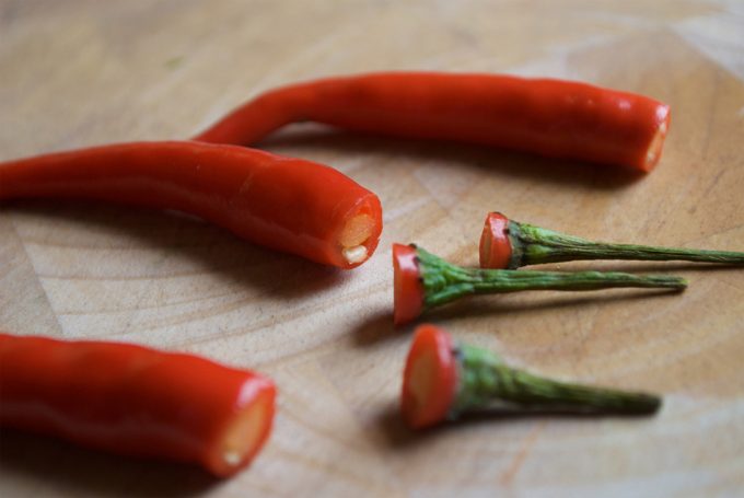 Por ello, es muy habitual que se utilicen guantes para cortar o picar guindillas o chiles, pues después basta con retirárselos parar tener las manos libres del mencionado compuesto químico. Aunque también se pueden adoptar algunos consejos con los que se pueden cortar estos pimientos casi sin tocar las partes más susceptibles de impregnar las manos con capsaicina. Si queréis tomar nota de algunos de estos consejos os recomendamos retomar la lectura de este post.
