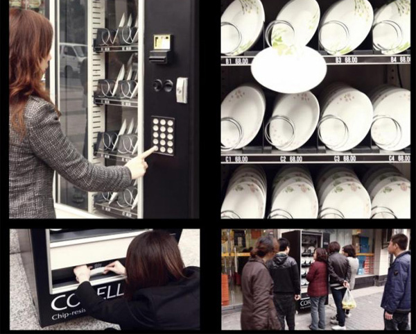 La intención era demostrar que las vajillas Corelle son resistentes, y así lograr aumentar las ventas, nada mejor para convencer a los consumidores que con una demostración diferente a lo habitual, ya lo veis en las imágenes, utilizando una máquina expendedora.