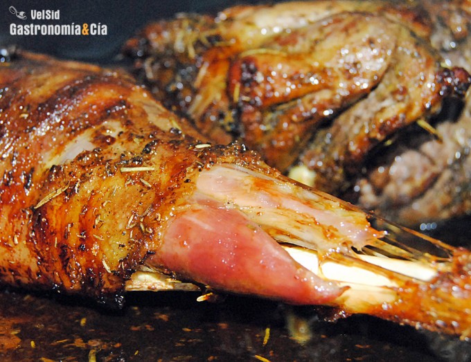 Una vez deshuesada la paletilla de cordero hay que atarla para asarla, pero antes es necesario aderezarla al gusto, sal, especias, hierbas aromáticas… incluso se puede rellenar. El hilo bramante se fija en el hueso de la paletilla y a continuación se va envolviendo la carne con el hilo como hacemos al atar la carne de un asado. Es laborioso, pero es una tarea culinaria con la que vamos a disfrutar muchísimo, desde su preparación hasta su degustación.