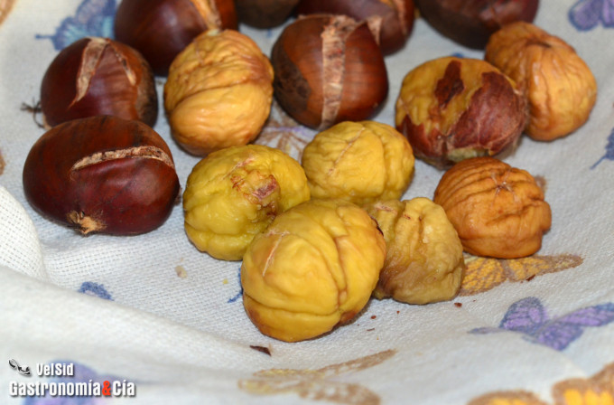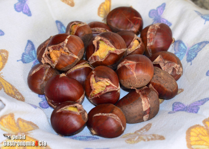Finalizado el tiempo, comprueba que las castañas están hechas a tu gusto y pásalas a un plato con un trapo para envolverlas, así se mantienen calientes para comerlas.