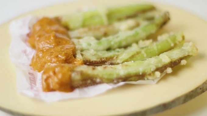 Hace unos años que Albert Adrià lanzó una línea de salsas, actualmente es bastante amplia, y para su promoción están realizando unos breves vídeos en los que se muestra su posible aplicación. Pues bien, hoy rescatamos uno de estos vídeos porque nos parece que puede gustaros aprender a hacer Cebolla en tempura con romesco de Albert Adrià, pero claro, pudiendo elaborarla con vuestra propia salsa romesco.