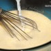 Así que retira la vaina de vainilla de la leche infusionada, y viértela poco a poco sobre las yemas sin dejar de batir. Una vez que hayas incorporado toda la leche, vuelve a poner en el cazo la preparación.
