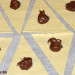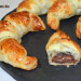 Realiza un pequeño corte vertical en la base de cada triángulo de hojaldre para abrirlo y que ‘los cuernos’ sean más anchos. Coloca sobre este corte (en altura, no encima) una cucharadita de crema de cacao y avellanas y empieza a enrollar la masa desde la base del triángulo hacia la punta.