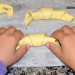 Si quieres hacer croissants pequeños, primero divide la masa en dos rectángulos, si quieres hacer croissants grandes, corta directamente los triángulos, cuya base no sea excesivamente ancha.