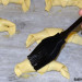 Pinta los croissants rellenos con el huevo batido y, si lo deseas, espolvorea un poco de azúcar, es opcional.