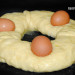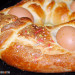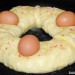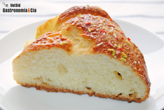 Nosotros os traemos la receta de la Mona de Pascua más tradicional de la Comunidad Valenciana, y que también se hace en los municipios colindantes, tanto de Cataluña como de Murcia, aunque como comentábamos, hay varios tipos, pero suelen ser con una masa similar, puede cambiar su forma, la decoración, el relleno… En este caso, es una masa de pan dulce en la que se ponen huevos para cocerlos durante el horneado. Después, la Mona de Pascua se puede comer sola, pero también se suele comer con el huevo duro y con la Longaniza de Pascua.