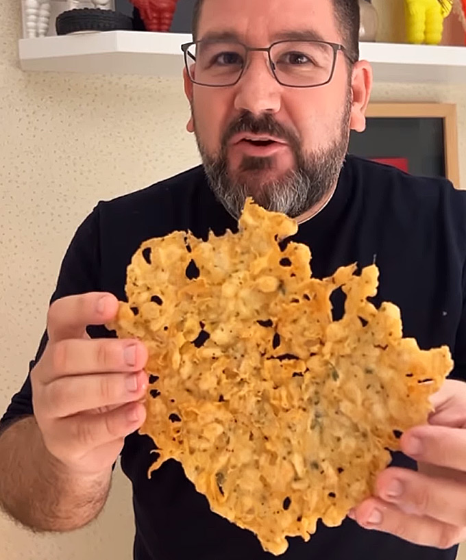 El chef marbellí nos cuenta que la proporción de harinas que utiliza para preparar la masa de las tortillas, es un 60% de trigo y un 40% de garbanzo. Luego, se pone el doble de agua que de harina, y la misma cantidad de camarones que de agua. En los ingredientes tenéis las cantidades indicadas, pero tener la fórmula os servirá para hacer más o menos cantidad, según vuestras necesidades. Probad la receta de estas tortillas de camarones crujientes y sabrosas de Dani García y contadnos qué tal os han salido.