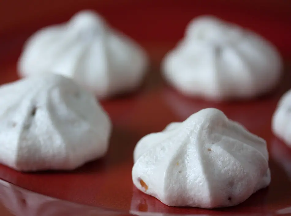 Ahí podréis ver que utiliza 125 mililitros de líquido de gobierno de los garbanzos, el resultante de un tarro de 500 gramos de legumbre, y además 125 gramos de azúcar glas. Y si se desea aromatizar, se añade extracto o esencia de vainilla, de limón, de almendras, de rosas… Una vez montado el líquido, se puede escudillar en una bandeja de horno cubierta con papel vegetal o con la cuchara, como hace Justin Chapple, y respecto al horneado, en Dimensión Vegana recomiendan unas dos horas a 100-120º C.