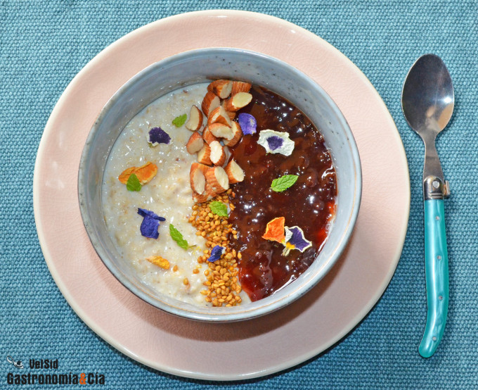 Porridge con mermelada de cerezas y almendras