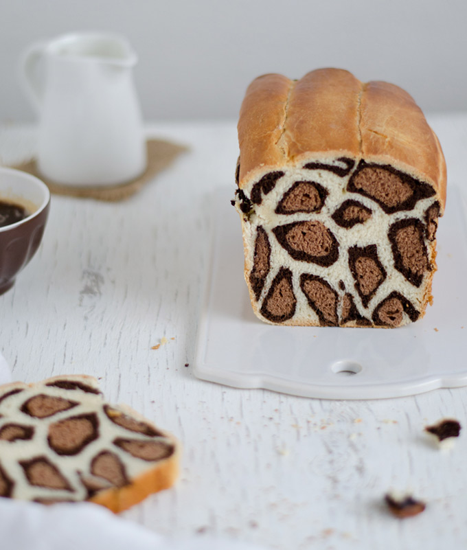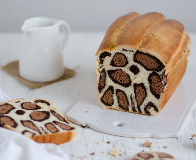 Pues bien, hoy os traemos otro pan original que además podréis elaborar siguiendo el vídeo que os dejaremos a continuación. Como podéis ver en las fotos, es un pan de leche con manchas de leopardo, y hay que decir que su elaboración es entretenida pero no es difícil, y el resultado no dejará indiferente a nadie. Si tenéis tiempo para hacer este pan de molde seguro que sorprendéis a vuestros comensales, sean niños o adultos. Quizá es una buena propuesta para San Valentín, habrá quien quiera cambiar los tejidos por panes y olvidarse de los corazones…