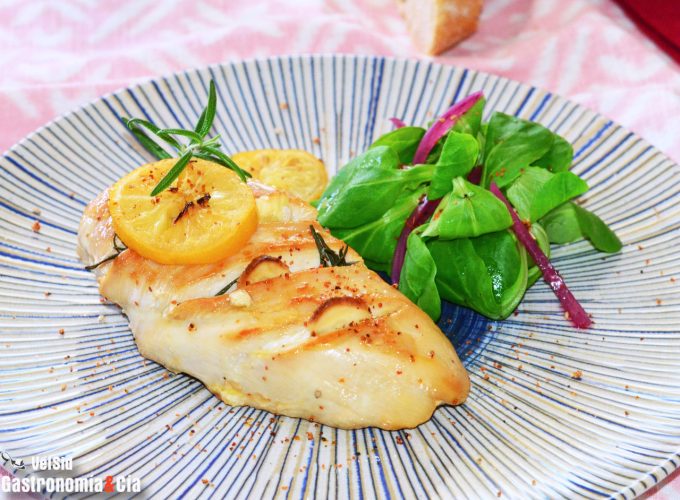 Pechuga de pollo con romero, ajo y limón encurtido