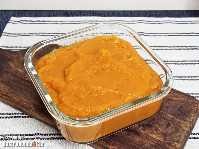 Si quieres congelar el puré de calabaza, puedes hacerlo en una fiambrera adecuada o en bolsas planas tipo Ziploc, que ocupan muy poco espacio. También hay cubiteras de tamaño grande que pueden servir para congelar el puré en porciones y tenerlo listo para un pastel individual, para una crema de calabaza para la cena… Es tan fácil y tan útil hacer el puré de calabaza casero, que si estabas empezando a consumir el de lata, lo dejarás caer en el olvido.