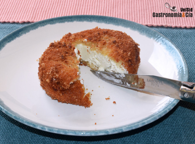 Mantén el queso de cabra en el frigorífico hasta el momento de rebozarlo y freírlo. Lo ideal es, también freírlo justo antes de servirlo para que el queso esté muy cremoso, no llega a fundirse, pero para algunas ensaladas puede resultar igualmente rico cuando se ha enfriado, aunque no esté tan cremoso.