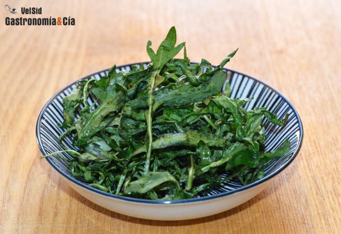 Deja enfriar la rúcula antes de utilizarla para el emplatado, fría estará más crujiente. Hay que manipularla con cuidado para que no se rompan las hojas, pues son muy finas y delicadas, pero ideales para decorar y para comer. ¡Buen provecho!