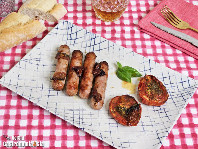 Los tomates frescos se impregnan con el aceite y la intensidad de los tomates secos, aportando una nota dulce y ligeramente ácida que realza cada bocado. Además, prepararlos en la airfryer a la vez que las salchichas, hace que sea una opción más limpia, no se ensuciará el fogón ni la encimera. ¿Os apuntáis la receta? Os esperamos en la cocina.
