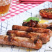 Nuestras salchichas van sin tripa, pero si las tuyas la tienen, recuerda pincharlas para que no exploten durante la cocción. Puedes utilizar un molde o bandeja para hacer las salchichas, que será más fácil que limpiar la cesta de la freidora de aire.