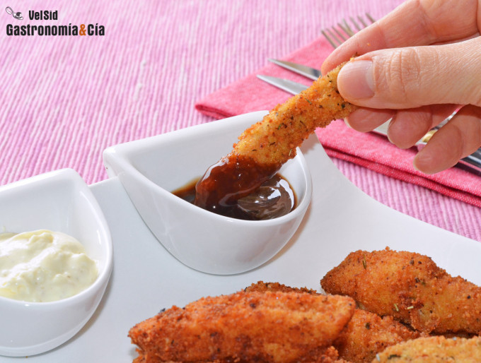 Pon a calentar una sartén honda con abundante aceite de oliva virgen, y cuando esté caliente, sin llegar a humear, introduce las tiras de pollo de una en una y dejando espacio entre ellas para que no se peguen. Fríe a temperatura media-alta y cuando se hayan dorado por un lado, dales la vuelta para que se hagan por el otro, el tiempo dependerá de lo gruesos que sean los fingers, pero es cuestión de pocos minutos.