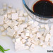 Escurre el tofu y sécalo con papel de cocina absorbente. Puedes prensarlo para extraer más agua y que absorba más el condimento. Córtalo en daditos pequeños.