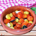 Lava y seca los tomates cherry y ponlos en un recipiente apto para la freidora de aire, en este caso hemos utilizado una cazuela de barro.