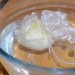 Pon un cuenco que tenga el tamaño suficiente como para cubrir el saquito con el huevo y llénalo con agua, sin llegar arriba.