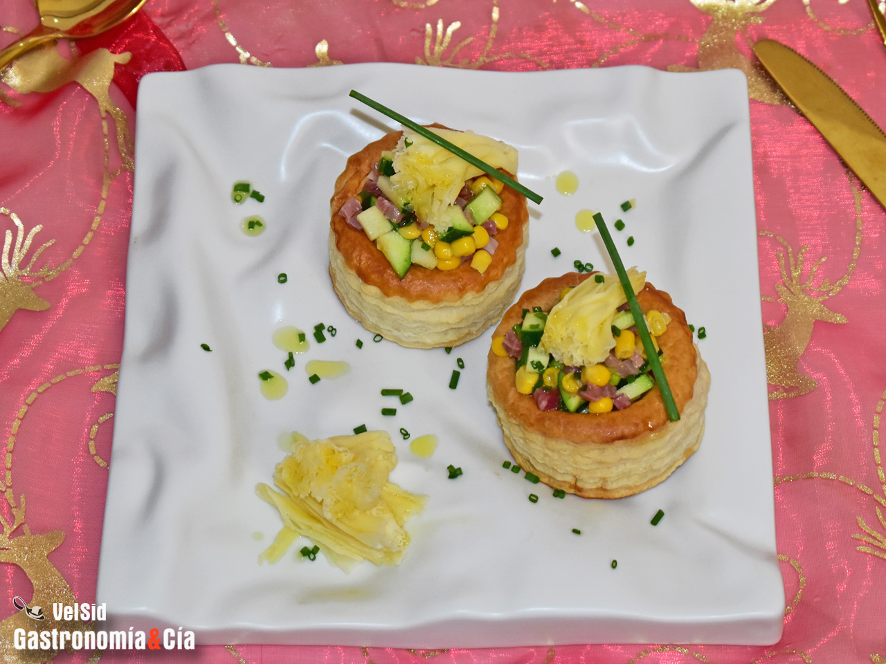 Un vol au vent o volován es un pequeño ‘cesto’ de hojaldre que queda vacío en el interior para rellenarlo y servir en él elaboraciones dulces o saladas, actúa por lo tanto de contenedor y de alimento, enriqueciendo el bocado con su ligereza y crujibilidad, y además con su sabor. Queremos mostraros en unas imágenes cómo hacer un vol au vent, pues es sencillo de elaborar siempre que se parta de un buen hojaldre.