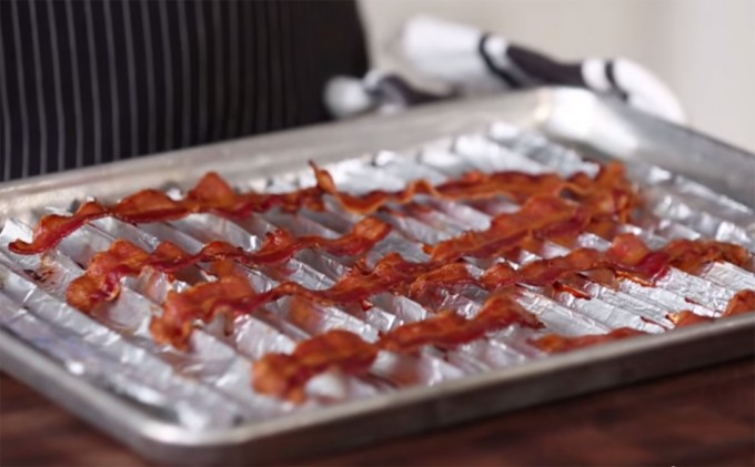 Pues bien, ¿qué sucede en caso de no tener una rejilla para el horno?, pues nada, simplemente que se debe improvisar, a continuación podéis ver un vídeo que muestra cómo hacer una parrilla para cocinar bacon en el horno.