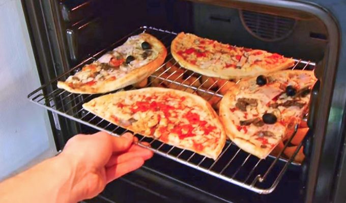 Y quien dice bandeja, dice rejilla, pues cuando se trata de hornear masas precocinadas puede ser más interesante para conseguir que éstas queden más crujientes. El truco consiste en cortar las pizzas precocinadas por la mitad de modo que las partes que han quedado con el corte recto, se pongan de forma paralela con los bordes de la bandeja, y las partes circulares (los medios círculos) quedarán en el interior de la bandeja.