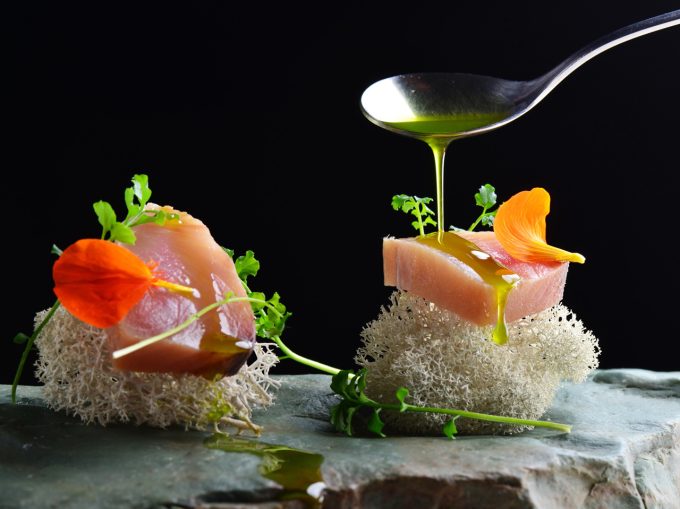 La textura es uno de los grandes complementos del emplatado y de la experiencia gastronómica, por lo que, quizá, es mucho más que un complemento… Combinar lo crujiente, lo cremoso y lo líquido añade dinamismo. Imaginemos un filete perfectamente dorado sobre un puré aterciopelado, acompañado de una salsa que fluye delicadamente alrededor del plato.