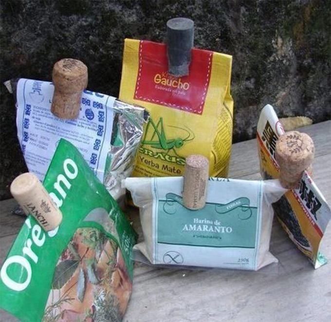 Pues para empezar con la sección ‘Cómo reutilizar’, vamos a ver cómo reutilizar tapones de corcho para cerrar bolsas, siendo además un consejo que puede resultar muy práctico cuando se organiza una celebración con amigos en una casa de campo o en cualquier lugar en el que no se dispone de lo que normalmente se tiene en casa. Lo cierto es que viendo las fotos poco más hace falta decir…