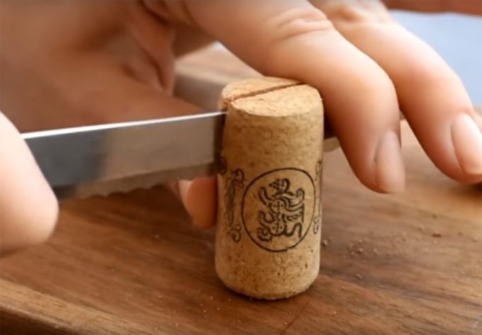 Basta con realizar un corte vertical en el centro del corcho, sólo hasta la mitad, sirve para ello un simple cuchillo de sierra. De este modo se obtiene una especie de pinza (como las pinzas de la ropa que veíamos en las películas americanas y que seguramente muchos compraríais hace años en Ikea, y que al final, no son nada prácticas), con la que se puede cerrar la bolsa de algo que tengamos empezado, como unas patatas chips, un sobre de semillas para plantar, una bolsa de pan de molde, etc.