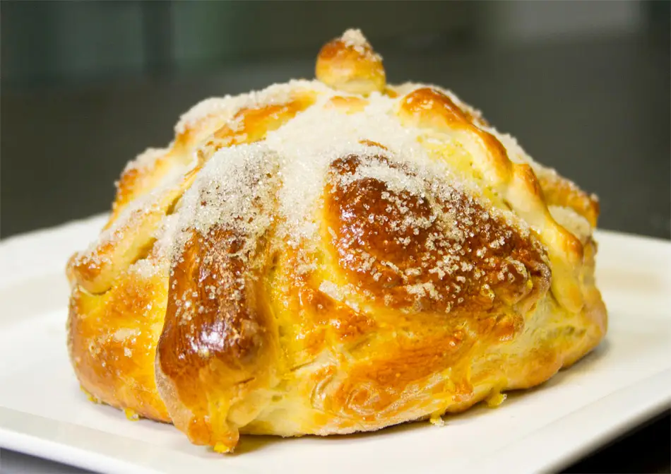 Su nombre no suena muy bien, pero su aspecto es una delicia, se trata de un pan dulce, tipo brioche, al que se le da una forma particular. Para quien no lo conozca, hemos seleccionado un vídeo en el que nos enseñan cómo se hace el Pan de Muerto. Esta es una de las recetas con ls que nos podemos guiar para elaborarlo, pero hay recetas diferentes, algunas con sésamo o ajonjolí, otras con vainilla o naranja, también hay Pan de Muerto con chocolate…
