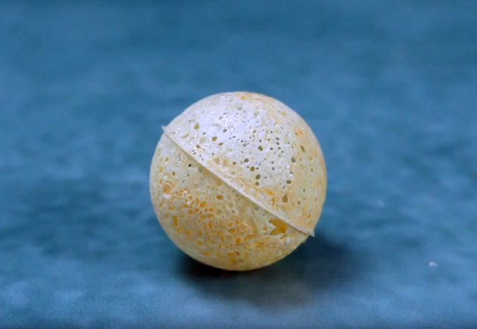 Se puede apreciar en el vídeo y en la foto que la esfera es finísima, muy delicada y tiene apariencia de un metal precioso. En boca lo que ofrece es el sabor de uno de los quesos más sabrosos y apreciados, ¿no os encantaría probarla?