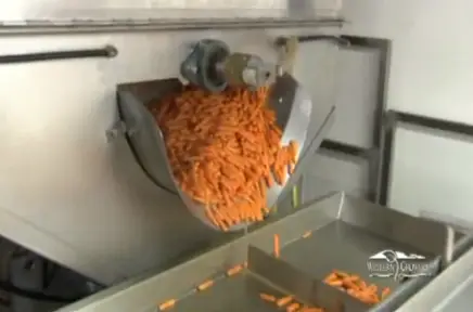 Como podemos ver en los vídeos que muestran cómo se hacen las zanahorias baby, las zanahorias maduras o las normales, las que consumimos habitualmente, pasan por una máquina que según leemos aquí, era la cortadora industrial de judías verdes. Fue a finales de 1980 cuando Mike Yurosek decidió pasar las zanahorias ‘feas’ por la máquina de cortar judías, dándoles una longitud de cinco centímetros, y después pasarlas por la máquina industrial de pelar patatas.
