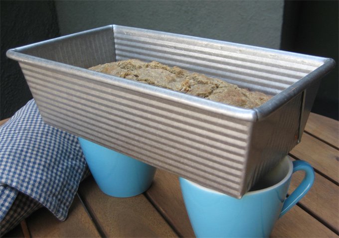 Es una idea muy simple pero útil, se puede colocar el molde de bizcocho o la bandeja del horno sobre dos tazas, vasos o recipientes similares, que proporcionen estabilidad y dejen libre el máximo de la base del recipiente en el que se ha horneado para favorecer su enfriamiento.
