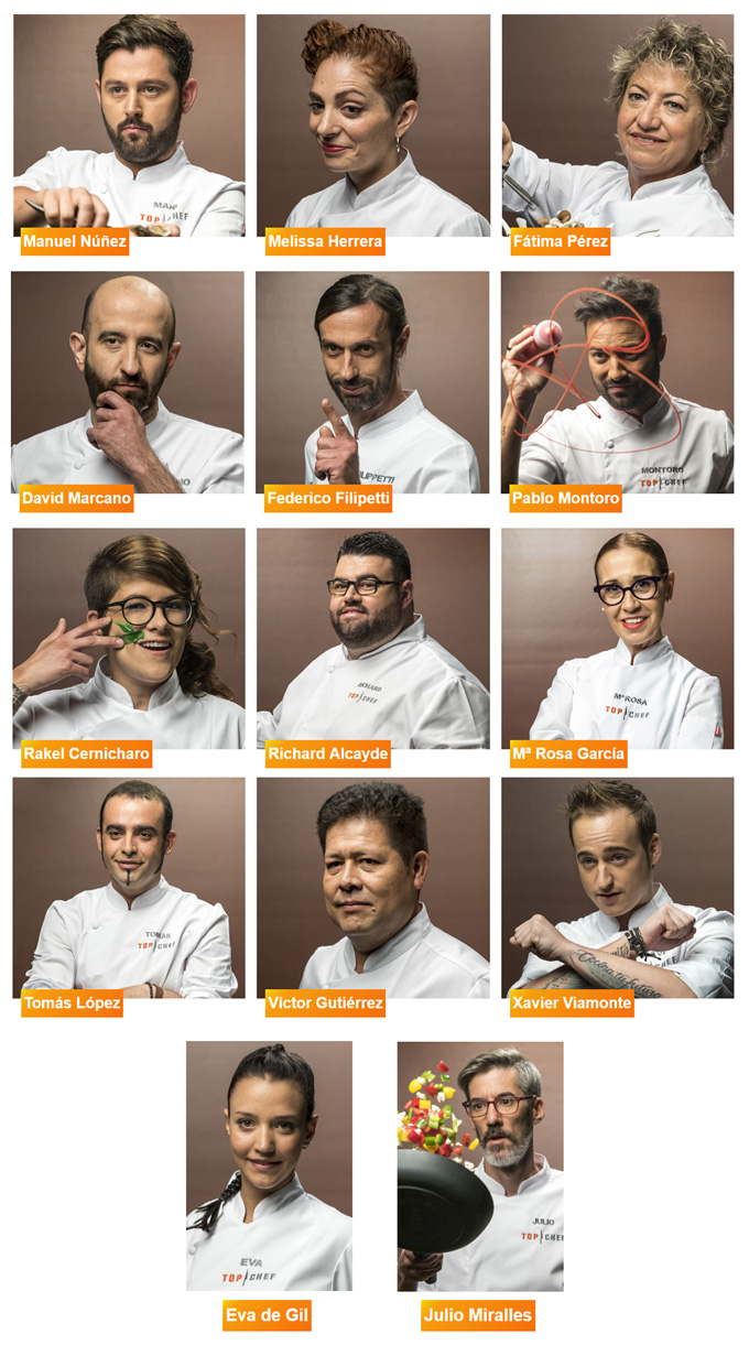 Esperamos que el nivel sea mayor que el de quien ha preparado la información inmensamente resumida de los 14 aspirantes de la cuarta edición de Top Chef España, tan resumida que en algunos casos ni siquiera indican dónde ejercen en la actualidad su profesión. Afortunadamente se puede ‘googlear’ el nombre de los cocineros y de la mayoría se puede obtener más información actualizada, pues como acertadamente han dicho, hay varios cocineros con reconocimientos o con una prolongada carrera profesional, aunque también hay juventud y nombres menos conocidos. Esperamos que con las aportaciones adicionales podáis haceros una idea de quienes van a encender los fogones de Top Chef 4.