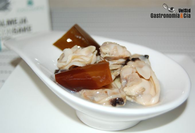 Podemos optar por un amplio abanico de conservas de mariscos de concha con distintas algas, como el Mejillón de roca al natural con tronco de wakame, la Navaja al ajillo con espagueti de mar, los Berberechos al jengibre con kombu de azúcar, la Almeja con sake y kombu, la Ensalada de algas a la japonesa, en aceite o a la vinagreta, etc.