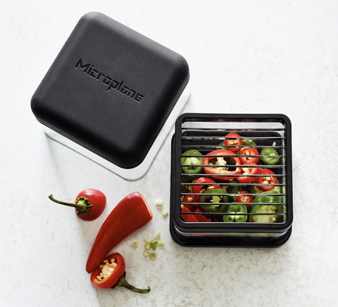 Recientemente ha lanzado el Microplane® Small Food Slicer, un cortador de frutas y vegetales pequeños que seguramente será de gran utilidad en las cocinas domésticas para preparar ensaladas, macedonias, guarniciones y lo que se precise. La cuestión es que a menudo nos rendimos al cuchillo para la preparación de los ingredientes a pesar de disponer de una herramienta específica, como puede ser una buena mandolina, porque nos da pereza sacarla del armario o lavarla después, pensando que va a dar más trabajo todo esto que cortar, por ejemplo, tres o cuatro tomates cherry.